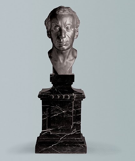 Something happened in 1771; Messerschmidt stopped receiving commissions and began the Character Heads; the group designation as well as the names of the individual heads are posthumous, and foolish, but used by convention. In 1774 he was rejected for a permanent appointment at the Academy of Fine Arts. The faculty didn’t question his talent, but his mental state; there is also speculation that he was caught up in academic politics. Messerschmidt retreated first to Munich, then to Bratislava where he received the occasional portrait commission and produced alabaster medallions, but primarily worked on the heads. They numbered more than sixty (although only about forty survive); most were cast in lead or lead alloys, the rest in alabaster.