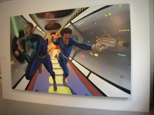 What happened to Jayson Scott Musson’s Hennessy Youngman stand-up comedy videos this month at Sande Webster Gallery? We hear she was worried about the content, then changed her mind, but no videos. Instead he’s showing paintings.