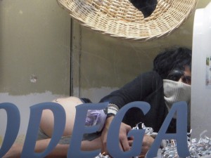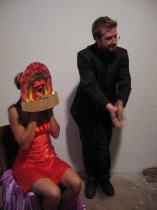 Wine flowing from the kitchen tap in Paul Outlaw and Jennifer Catron’s tricked out kitchen installation. It went perfectly with the cupcakes and the bickering,