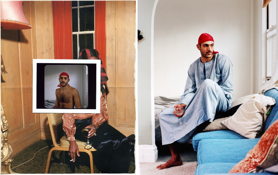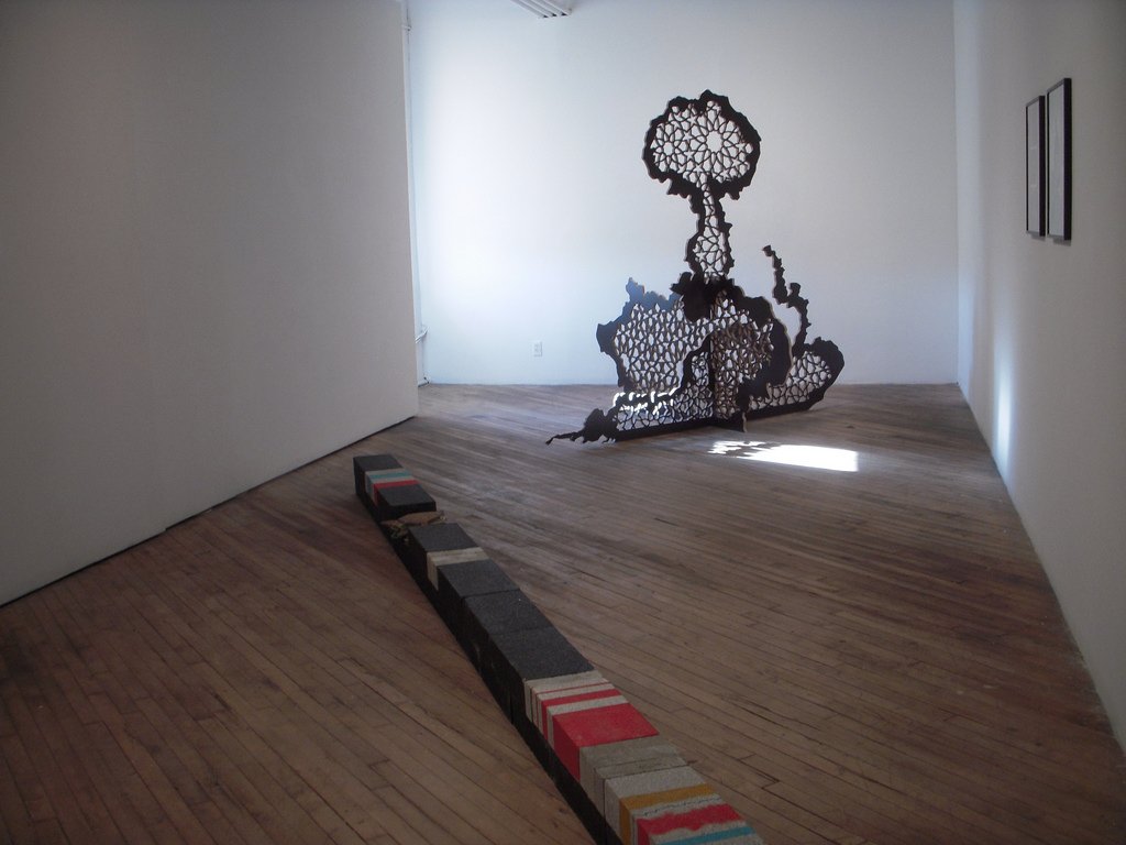 A separate gallery space groups a few of the best sculptures and works on paper, a show within a show; the isolation keeps the pieces from being subsumed by the loud, aggressive videos. Notable in this group are Sherin Guirguis’ “Mashrabeya,” a carved plywood cut-out, Wardell Milan’s cut-paper collages on botanical prints and Paul Mpagi Sepuya’s photo collage “The Egyptian.” These works alone are worth a trip to the show, which is ultimately a rich conversation about race, immigration, gender, ethnicity and perception.