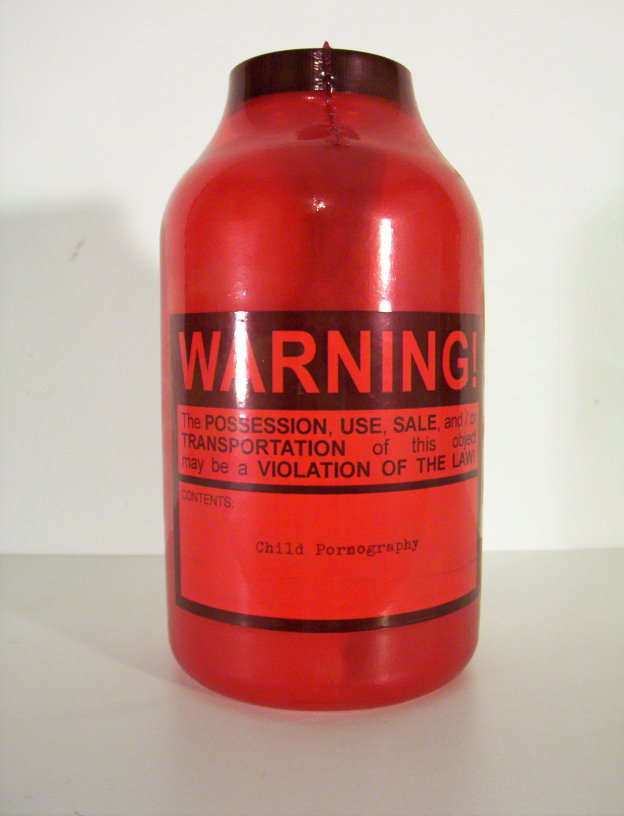 CA – In your series “Contraband” (collection of sculptures) you have child pornography encased in a plastic bottle. Is this an example of “WHEN ART ATTACKS?”
