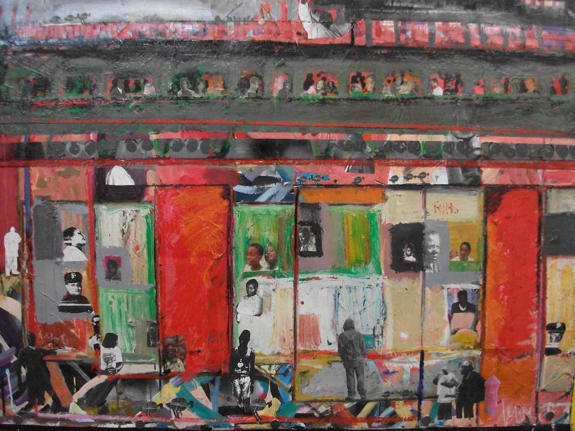 A few weeks ago I had the privilege of installing the works of Leroy Johnson in the galleries of Isaiah Zagar’s sprawling South Street creation, Philadelphia’s Magic Gardens (I have worked here as a guide and preparator). You wouldn’t think that in this particular setting—where mosaicked materials creep over each and every surface, from bathroom cabinets, across ceilings and floors, and out into a labyrinthine garden—that a lineup of works on paper and small sculptures would be able to get a word in edgewise. But the pieces by native Philadelphian Leroy Johnson that line the walls of his one-man show read more like a motion-picture than like still works. They literally roar with kinetic and frenetic energy of their subject matter: traversing, inhabiting and navigating urban space, and specifically, the streets of Philadelphia.