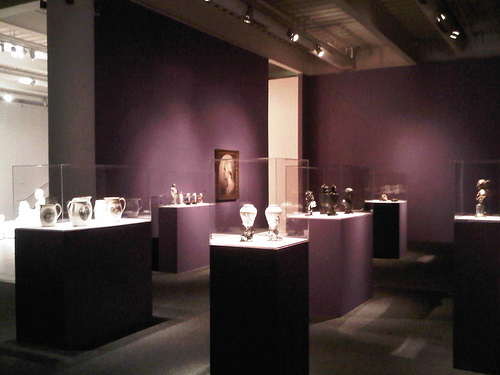 The Institute of Contemporary Art (ICA) invited the artist, Virgil Marti, to create an exhibition from works in the store rooms of the Philadelphia Museum of Art (PMA), and Marti’s discoveries among the museum’s overflow, dis-attributed, unfashionable, and otherwise overlooked collections were a spur to his imagination. The objects in storage reminded Marti of the final scenes of Orson Welles’ Citizen Kane, with its panning shot of the endless, largely unopened crates of Kane’s accumulated treasures. In Set Pieces (at the ICA through Feb. 13, 2011), Marti gives previously-silent objects new lives in a sequence of tableaux sprung from his movie-filled memories and dreams. His wonderfully-unorthodox exhibition explores death, memory, art, illusion, museums, and a long history of writing about these subjects.