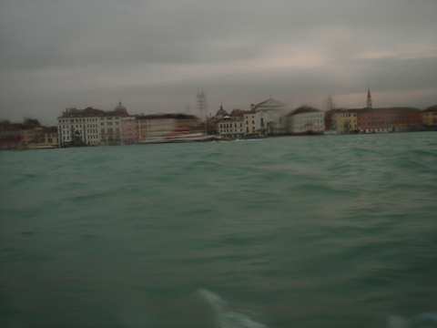 My mother’s desire to retrieve the vestiges of invisible human history is tinged with a certain melancholy. She manages, with only her small digital camera – and no PhotoShop distortions – to make the invisible visible. Water threatens to swallow the city of Venice in arrival (seen after the jump), the cityscape smeared with the sweat and blur of aqueous peril.