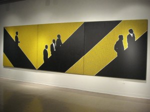 Is it possible for a catalog essay to be a bodice ripper? Oh, we guess that would be an inappropriate designation, given the feminist roots of this show. But honestly, Sid’s essay, Beyond the Surface: Women and Pop Art 1958-1968 is certainly a pulp-fiction kind of page turner–at least as catalog essays go. He paints a sweeping tableau in plain non-art-speak language of a world in which Pop emerged in response to its time and in succession to the macho excesses of Abstract Expressionism.