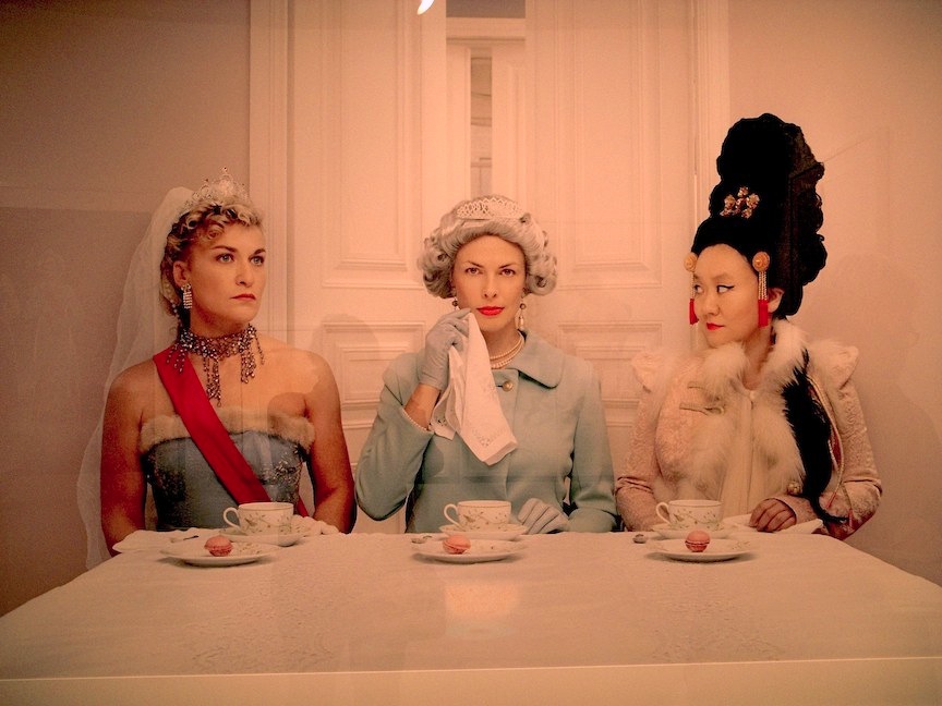 We’ve been in New York, looking at contemporary art at the Armory and Volta. We’ll do a core dump soon but, as a little taste of things to come here’s a photo (with reflections, sorry about that) of a photo we loved by a Russian collective, The Fourth Height, working in collaboration with photographer Urs Bigler. The collective members, pictured here, perform in costume and pose for Bigler in a series called “The Crown.” If you’re going to Volta, don’t miss it– Pobeda Gallery, Moscow, Booth A4.