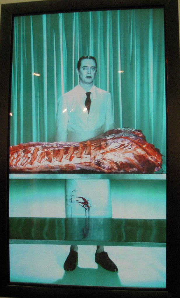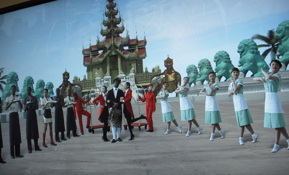 The Russian collective AES+F at the Melbourne Gallery Anna Schwartz pulled us to a halt with its captivating video The Feast of Trimalchio. We spoke to the gallerist who explained that the piece had been in the 2009 Venice Biennale (group show) as a multi-channel projection, and that AES+F had represented Russia at the 2007 Biennale. The subject of international tourism was not the only piece we saw that played with the old art historical idea of exoticism in art, but unlike the traditional 19th century Eastern potentate portraits and damsels at the well, the nouveau versions are self-conscious and ironic. The figures, with their CGI motion, had a feel of Second Life and avatars–and the new global order.