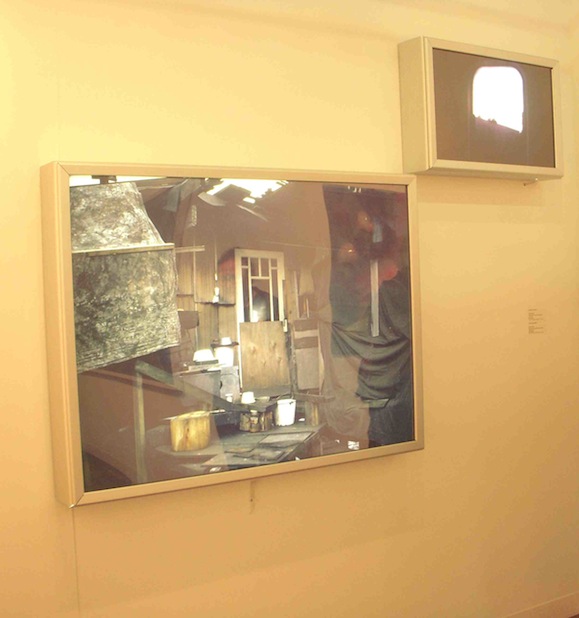 Cate, our photography expert, noted that light boxes, which had been hot several years ago and then went out of fashion, must be in again. Iain Baxter’s boxes date from the 1960s. He’s was a professor at the University of British Columbia when Jeff Wall was there. The gallerist told us Baxter was a lightbox pioneer and that his background is in biology. He has interests in environmental things. Another Canadian who loves his lightboxes, Rodney Graham, deliberately confused identity, time and space, real and unreal in his image of himself as an old-fashioned lighthouse keeper. The image peeking out on his book page was of the same space, perhaps even the source picture–or vice versa, a copy–in reverse!