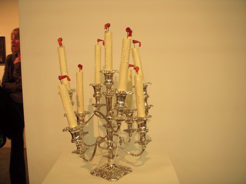 Then later on, a candelabra with windsocks spinning by Joseph Kohnke near the Pierogi booth. And again at Volta, there was a spinning tree. We don’t get it. Perhaps it’s an effort to put some life into a recession year in art. Stay tuned for another post about Volta.