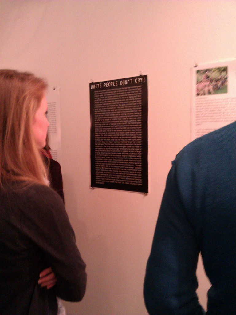 Formerly the author of the Philly Weekly (and later Mad Decent Records) column “Black Like Me,” Musson is as much a writer as he is an arist. The Hard Sell consists of large-scale, printed tirades that evolved from his poster series Too Black for B.E.T., which was exhibited in 2001 and 2006. These rants cover topics from why only Christian nations should own nukes to how believing in god would be worse than having a jealous ex because god has superpowers. They are delightfully derisive contradictions.