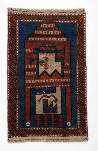 A handful of the rugs on view incorporate more than Western motifs, employing Western visual conventions of perspective as well, and one particularly striking example employs the multiple parallel images of much international television news, complete with texts running along the bottom. Despite the many unanswered questions about these war rugs, they unquestionably testify to the state of war as an ongoing feature of Afghan life, to the persistence of tribal craft traditions, the flexibility of craftsmen who produce goods for trade and the role of trade in intercultural contacts; most of all, they reflect a population of uneducated women who can produce such labor-intensive products for such low prices. When universal education becomes standard in Afghan communities, it may be the end of the production of hand-made rugs. But the women will certainly celebrate the beating of tanks into tractors and guns into pruning hooks, when, as Issiah foretold, nation will not take up arms against nation, neither will they train for war anymore.