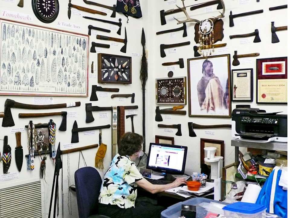 Formhals, who is himself a photographer, picked work for the first issue that skews to the humorous and deadpan. Pictured over and over, in works by many different artists, are those moments in life that are odd and evocative, like the cover image by Chuck Patch of a barn on fire in an otherwise pastoral setting where you question what the hell happened and where is everybody; or the photo by Simon Kossoff of an office whose walls are covered to the ceiling with Native American artifacts — hatchets and arrowheads — and almost completely invisible amidst the aggressive wall display is a woman at a computer, a historian, presumably, dwarfed by history.