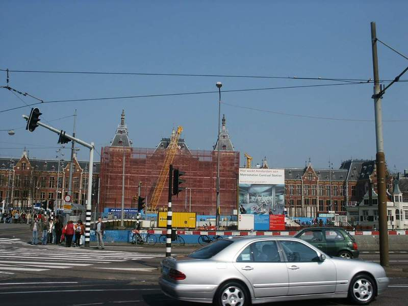 I love Amsterdam and have been visiting a close friend there regularly since 1998, but if you’ve never been to the city, this is not a good time to go. Much of the city is torn up because of large construction projects: at the train station (whose entrance is entirely obscured behind hoardings, below, and interior is also undergoing work); on major streets, where they are building a subway; and at both the Rijksmuseum and Stedelijk Museum. Both museums have a small selection of their collections on view, which is probably sufficient for tourists, but not for readers of artblog. The work has been ongoing for years and shows no sign of an end. It reminds me of the endless work on Lake Shore Drive in Chicago, which is obviously a works project for friends and family of well-placed politicians.