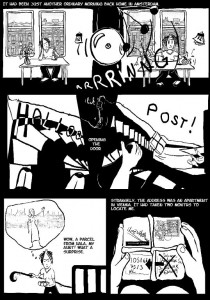 Sezen is sophisticated about visual story-telling and employs various conventions of comics and film to tell her story, such as changes of focus, jump cuts, and first-person narrative where the protagonist’s internal life parallels the larger story. Her details tellingly set the story variously in Amsterdam, Vienna and Istanbul and while her characters are informally – drawn, each is well developed, with individual characteristics. This may be her first graphic novel (her previous work was in shorter formats), but she has mastered the form.