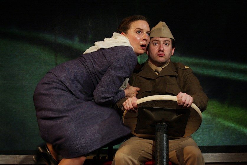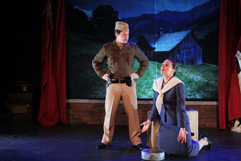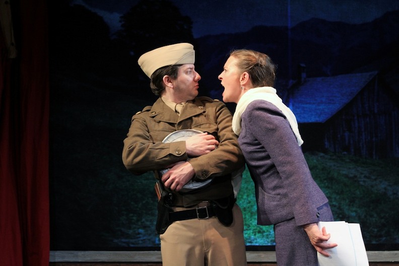 Robert DaPonte as The Soldier cements his status as one of Philadelphia’s finest young actors, equally adept at physical comedy and committed characterizations, at accents and impersonations. Under Seth Reichgott’s direction, Amanda Grove’s Leni is powerful and commanding, comical and conflicted, but steadfastly unwilling “to shoulder the burden of other people’s crimes.”