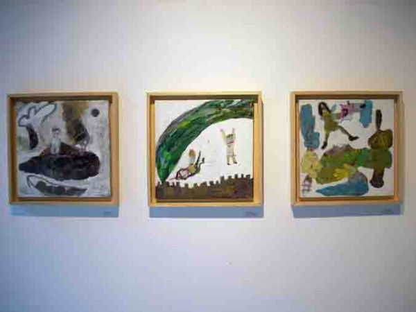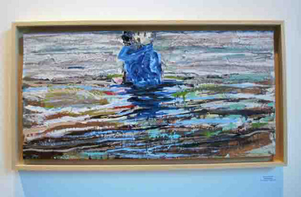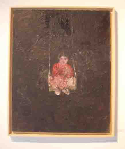 Some of the most interesting autofiction that Thiercelin is sharing in this new work is seen in his self-portraits. “Self-Portrait on a Swing” shows a sitting figure swinging in black space or on the black space. It is the vagueness of the blackness that gives the painting the feeling of suspension and movement. The artist says that the idea behind self-portraits was to explore the position of the artist in the world. He says, “In a sense, I have portrayed the artist’s plight in the society; his ‘impossibility’ [or] his ‘possiblilty’, as he is faced with the impregnable paths of the society.” In this sense the painting succeeds, celebrating what may be a lonely path of the artist, while it celebrates the artist’s freedom of internal and external exploration. Thiercelin’s use of swings is seen in another painting, “On a Swing,” which depicts not the exhilarating motion of movement, but hanging in gravitational balance. This balance and equilibrium is also something that appeals to the artist.