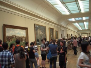 The other exhibit we saw was Night Vision–black and white photography from 1890s to the present, much of it from the 1940s and ’50s but some of it more recent (like the work by Japanese photographer Kohei Yoshiyuki showing people watching couples having sex in a park). From the rainy cobblestone streets of Paris to Weegee and Yoshiyuki, Robert Frank and even some Diane Arbus (works from the estate that are now in the Met’s collection), it’s a good show. All the works are small, all are framed and under glass, and Cate and I noticed how much harder it was to see the works in this show than it was to see the mostly not glassed-in works in the contemporary show.