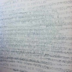Most of the pieces are framed but bare of glass, allowing the content to burst beyond the rectangle and push out from the wall. A few are woven and unframed, pinned to the wall.