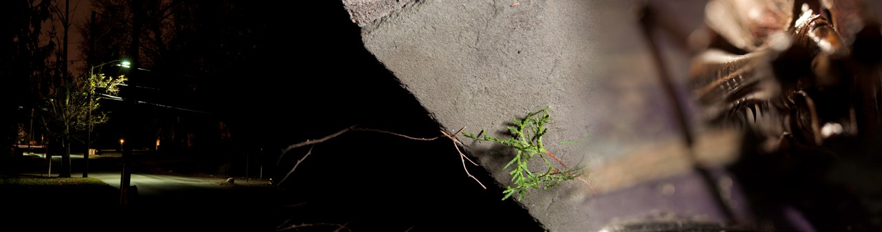 Gina Delia digitally stitches together opposing scenes, connecting them by only their shared darkness. While the lighter areas are heavily saturated and beautifully textured, the deep chasms of darkness, which both separate and connect her scenes, make these photos a wonderful contrast to Beckly. In Edge of Darkness, the cliff-like corner of a stone falls off into pitch blackness. The shadows divide two very different, yet structurally exquisite forms: the close-up of an insect exoskeleton and the self-lit scene of a street light and power lines.