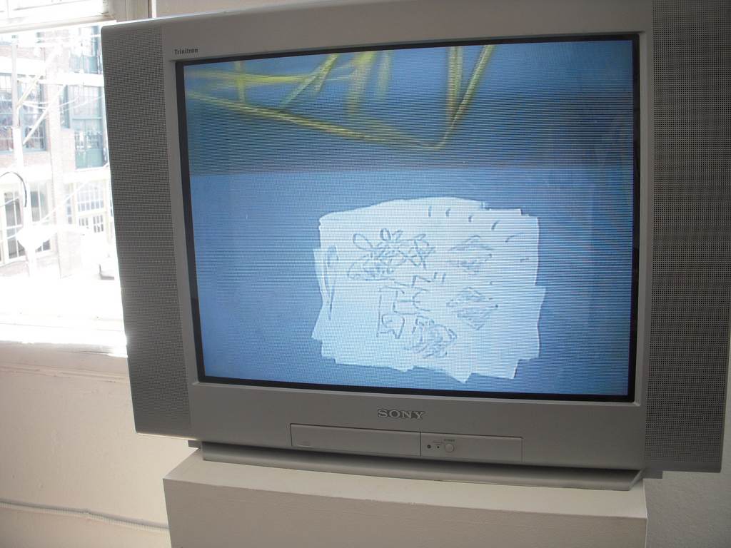 Tara Kelton’s Leonardo, 2008, is a parody of a teach yourself how to draw video lesson only here what’s being drawn is a kind of abstract black mass with nothing Leonardo-esque about it. Also funny. And Ben Pederson’s sad-sack video — of a drawing with animated text that may or may not be autobiographical — fits our contemporary taste for self-exposure without dignity.