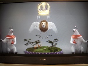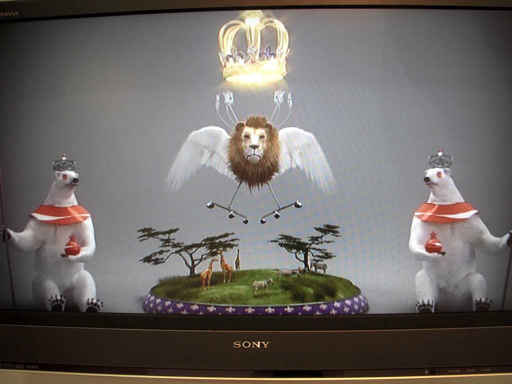 The short, computer-animated film Dauphin 007 by Jonathan Monaghan is a morality tale with animal characters. A lion and a crow are rivals and position themselves for the crown. Only one can have it, but the one that presumably is destined for it (the lion) only gets it in heaven after the wily crow engineers the lion’s beheading. The conflation of religion, animal lore and swanky 3D animation is interesting if somewhat off-putting. The animals move in a choppy, Second Life fashion and the entire short story, with its echoes of The Lion the Witch and the Wardrobe with the Christ-like Aslan, is weirdly preachy.
