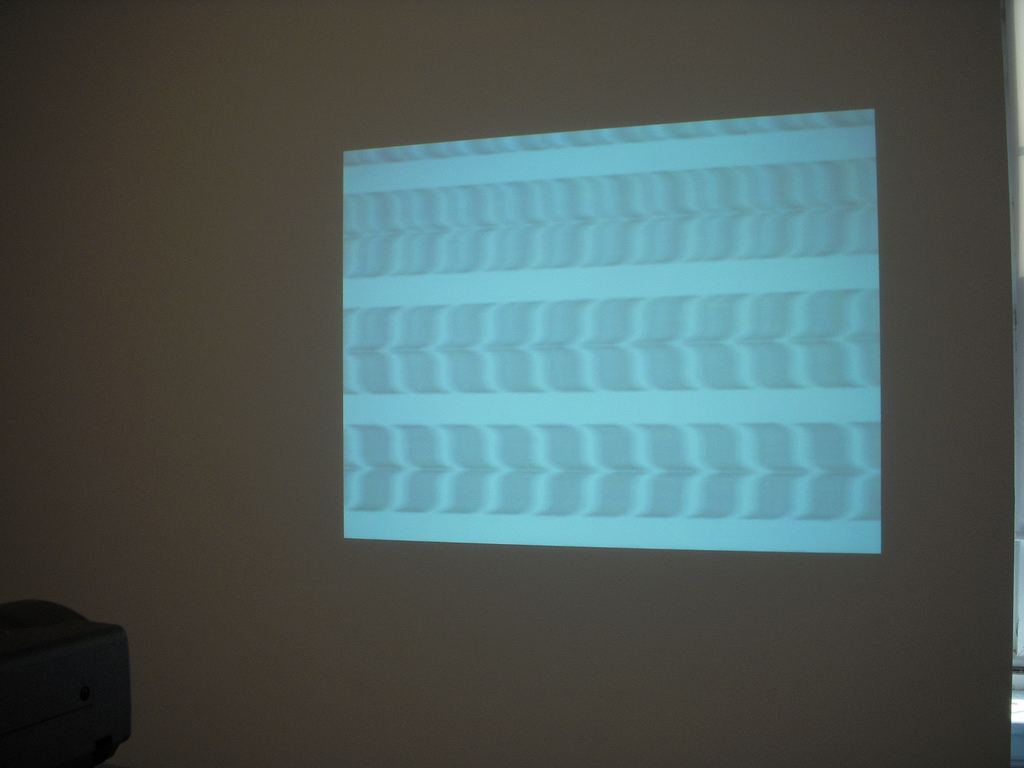 Guest artist Bonnie Begusch’s Motion Pictures — animated bits of moving type flying and flashing and flitting across screens or projected onto walls — reminds me of Young-Hae Chang Heavy Industries‘ moveable type text-video in the Temple Gallery Philagrafika show. Whereas the Heavy Industries’ piece is a story with music, Begusch’s silent works are abstractions of language — formalist designs using bits and pieces of keyboard type. Some of the pieces are more captivating than others — the piece projected low on the wall that has actual words — but words that are so blurry and sped up you can’t read them — kept us hostage as we hoped for a sentence, or at least a word or two (not forthcoming while we were there).