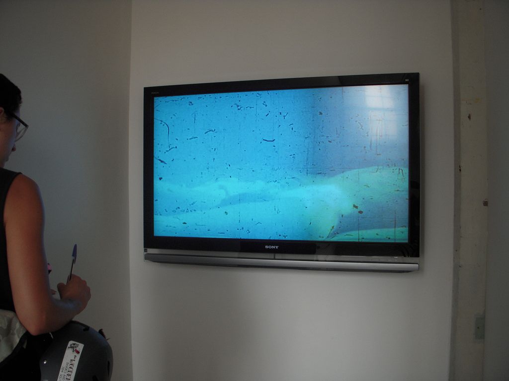 The surprise here is Carolee Schneemann, the powerhouse 60’s-era feminist artist — her presence is highly unexpected in an alternative gallery show. “Fuses,” her scratchy film-to-video, (1966) is a melange of moving images of bodies (herself and her boyfriend making love), sometimes so up-close they are completely abstract. The work slips from one image to another with a liquid fluidity, and the mournful piece talks beautifully with both Tim Belknap’s skeleton piece and William Blackhurst’s two videos. All the work in the show is moody, a little forlorn and human-focused.