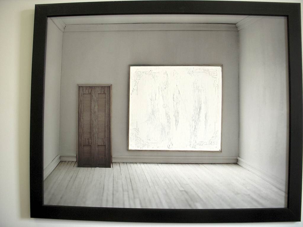 Also a kind of magic, Dana McElroy’s photo of a room with a spooky luminescent window, and a door that appears to be coming up out of the floor. We were told the image is of a miniature environment. Whatever the source, there’s some Magritte-like wizardry in the work.