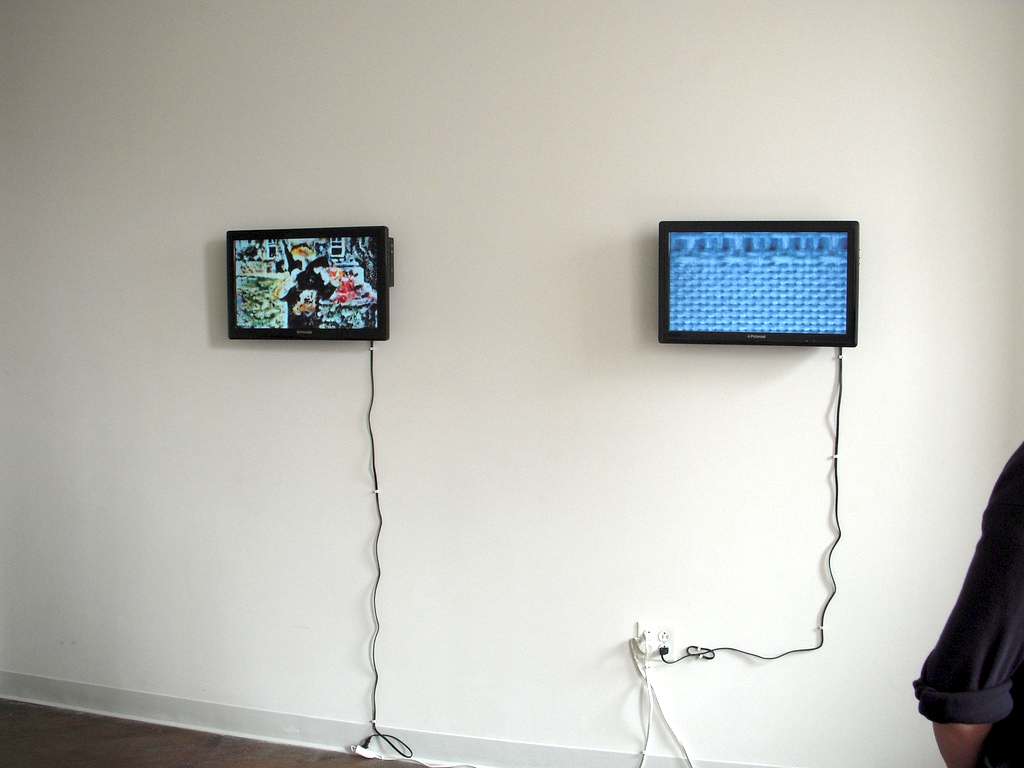William Blackhurst’s animations merge video footage of what might be home movies with animation to create a psychedelic and fractured narrative — a take on human interaction that suggests we all have real and unreal characters within. The artist lives in London and the press release says this is his first gallery exhibit.
