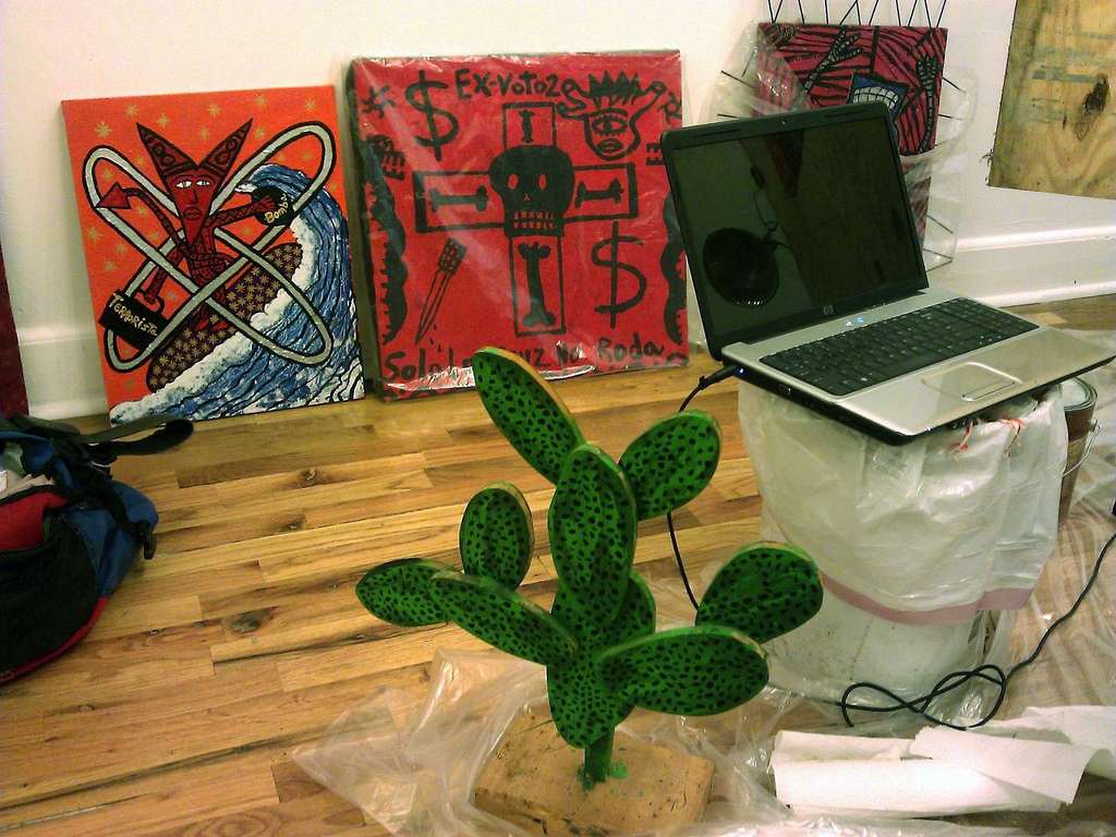He said an NEA grant in ’89 allowed him to spend the summer in Oaxaca, and since then he has cycled to San Francisco, Oaxaca and back again. In San Francisco, he shares a tiny studio, but in Oaxaca, his studio is spacious.