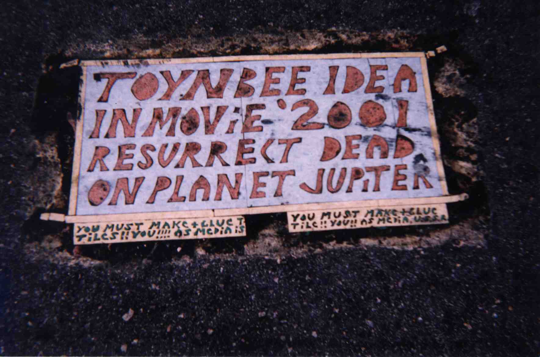 I was intrigued — but not obsessed. Only the truly obsessed, like Justin Duerr and his cohorts Colin Smith and Steve Weinik, who labored and researched and followed leads and interviewed people and wouldn’t let it go, only they could actually crack the mystery. And now, with Jon Foy’s beautiful movie “Resurrect Dead –The Mystery of the Toynbee Tiles” ten years in the making, we can all know the secret. And for reasons I will not explain I will say only that you, like the film’s obsessed protagonists, will, when you know, finally have to let it go, put it to rest, appreciate it, and move on.