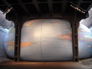 Outside, next to the gallery, David Byrne’s “Tight Spot,” squeezed itself in between two buildings beneath the HighLine. Made of the same material as Macy’s Thanksgiving Parade balloons, the skewed beach ball globe is priced at $200,000, if you want it. The may tweaks the continents and countries and has, for example, an enormous Brazil. When we asked why, the gallery assistant stationed there said it was probably because Byrne goes to Brazil all the time and really loves it there. Tight Spot made a loud, low moaning sound — a cow stuck in a fence comes to mind. Funny. Tight Spot is now down, but Social Media is up through Oct. 15.
