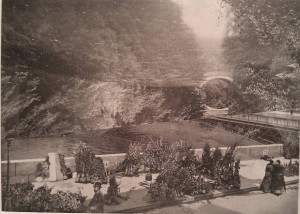 In an equally puckish approach, Stezaker does a double Duchamp reference in using a ready-made, an old travel postcard, which he presents unaltered. By naming it Nymph, he turns a landscape with a waterfall into a bit of erotica that seems to reference Duchamp’s Étant donnés.