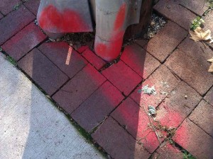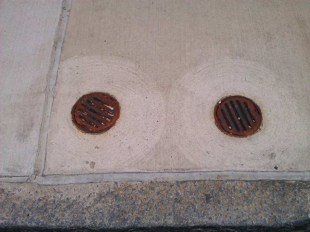 I like how the drains, with the carefully scored concrete circles turn this patch of sidewalk and curb into a startled, vulnerable face. But it too didn’t make the cut.