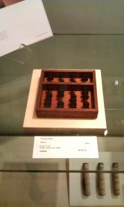 I was drawn to Sonya Clark’s show at Snyderman Gallery by a photo of a chair she had made–a found armchair festooned with braids that hung off the back and bottom like Spanish moss. Fit for an African king I thought.