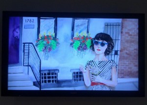 I did not stand for the full 12 minutes in front of Aaron Storck’s loopy video Poetry and Music in Kansas Bush. Another video, nameless, also by Storck (I don’t know the title), was hilarious and riveting. In both the artist stars, bringing a stoner-movie affect to his mix of magician and medicine show huckster. He rants and chants, combining hippie spaciness with talk TV and reality TV. I’m sure there’s more to say and more to see, but I gotta tell you, I loved my little glimpse of his paradise.