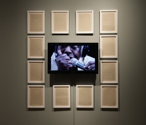 The exhibition emphasized the physical interactions between people and technology with changing sensual experiences: Plöger’s books were perused by viewers seated at a table, turning pages; Magdalena Pederin’s The Name is an Anagram was shown in a darkened space where multi-dimensional images created a changing, immersive environment; Nam June Paik and John Godfrey’s Global Groove was a single-channel video, and having to standing to watch it was a reminder that the pioneering work was made in 1973, long before MTV brought music videos to our livingrooms.