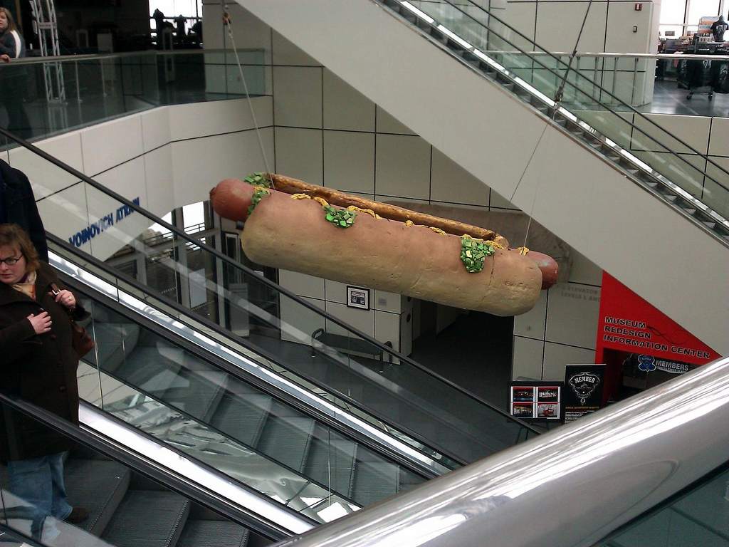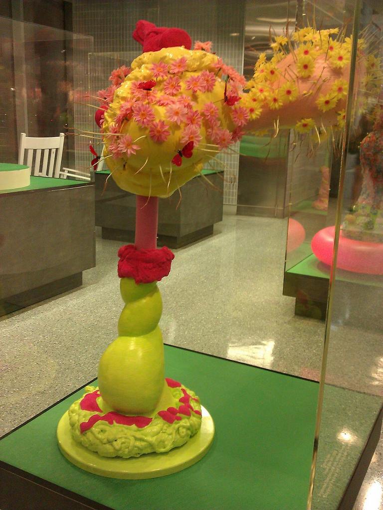Roberley Bell’s bubbly pop sculptures look exuberant in the gray airport Terminal A. And right nearby, a giant mechanized sculpture by Stanley Clockworks features beer bottles and turning wheels. The juxtaposition was pure Coney Island, with the mechanical wizardry of the Wonder Wheel and the Parachute Jump surrounded by the beachy, Salvador Dali’s Dream of Venus, and honky-tonk advertisements for midway games and geek shows.