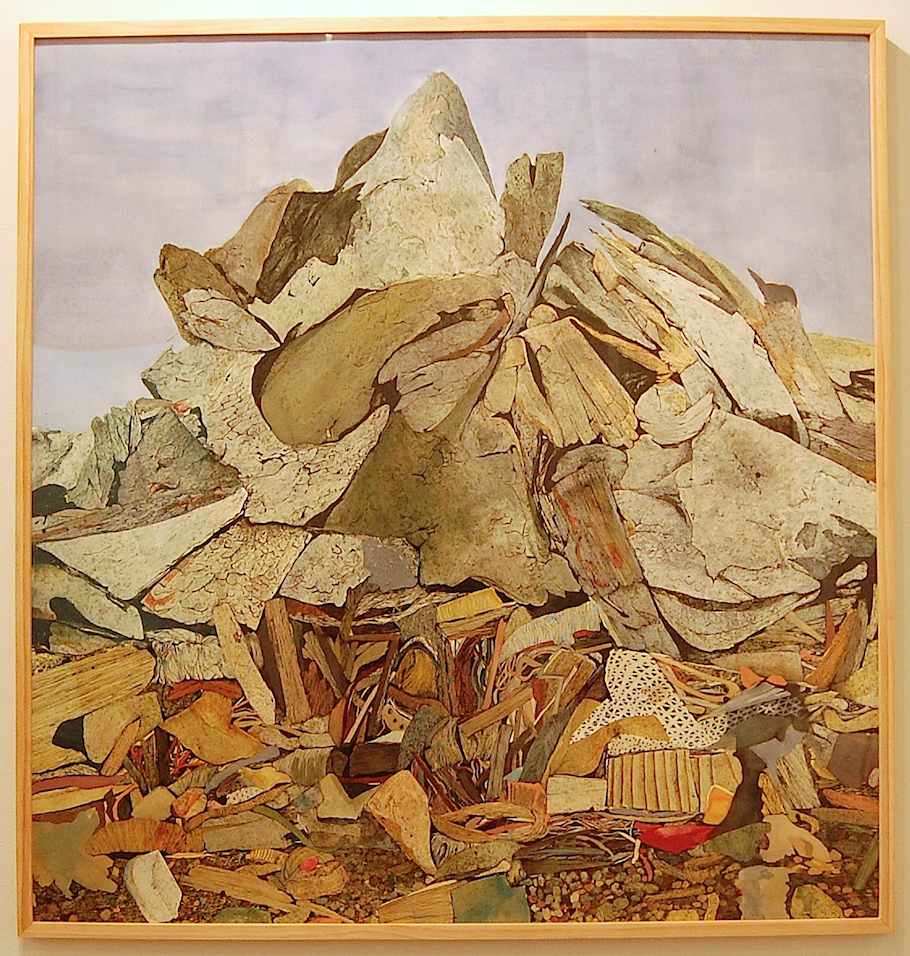 Their presentation may be formal, but Samantha Mitchell’s approach to what she called ‘abstract landscapes and natural portraiture’ feels compelling and new. Her meticulously detailed drawings can expose the symmetry in the face of a piece of wind-swept water-battered rock that’s often obscured by nature’s chaos. She makes radical shifts in scale from piece to piece that highlight correspondences between the pieces of wood, rock and earth she examines. A massive mountain landscape is dissected crag by crag and drawn line by line, exactly like the infinite variety of crevices and cracks in the fist-sized rock hanging beside it.