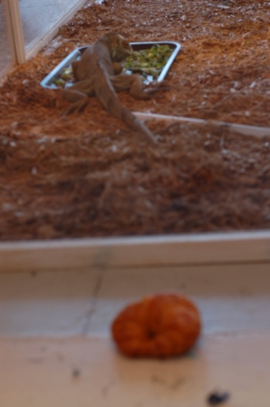 Next door, Bader’s “very old cat” or “iguana and croissant” await viewers under heat lamps, which keep both the lizard toasty and the croissant from going stale.