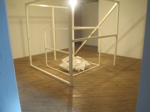 Unfortunate news – Bruce Campbell’s room-spanning sculpture at Vox Populi was damaged by a visitor on Friday and can’t be repaired during the show’s run. Bruce is asking that anyone who has pictures of the work prior to the damage (with or without people in the shots) send them to him at smashed.sculpture@gmail.com – thanks in advance for your help! He’s also issued an appeal for people to be more respectful of art. It’s a shame that he even has to do so, but since Linda Yun’s installation (also at Vox) was knocked down more than once last weekend as well, it certainly warrants a conversation about audience interaction.