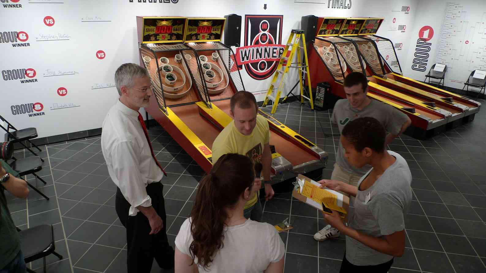 Imagine you’re a college soccer player at a small private school outside Philadelphia. It’s mid-March and out of the blue, you receive an email from the college art gallery inviting you to play in a skee-ball tournament, in the gallery, as part of an art project titled And The Winner Is…. You have not been selected because you are an athlete. But in fact, your name has been entered as a player in the tournament along with every other member of the Haverford College community — all 1,920 students, faculty and staff.
