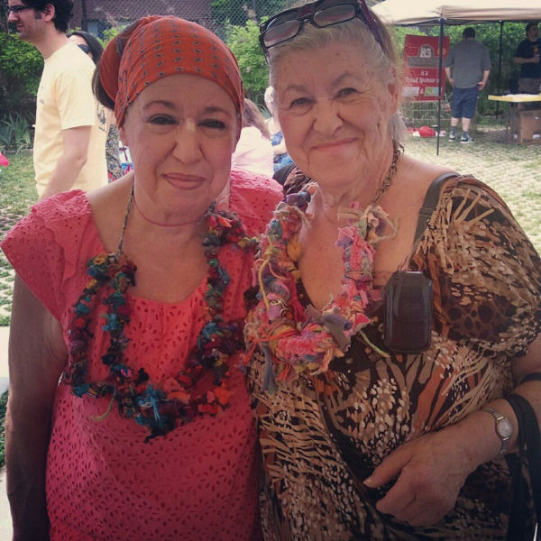 North Lawrence Midnight Singers’ alternative-folk rock tunes coursed through balmy air as we browsed the outdoor booths. Their laid-back melodies perfectly suited the slow, summer afternoon. While outside we met Alissa Laughlin of Upcycled Jewelry; her funky, one-of-a-kind creations are made from repurposed materials—fashionable, sustainable and clever. We loved this photo she snapped of two classy customers sporting her quirky designs.