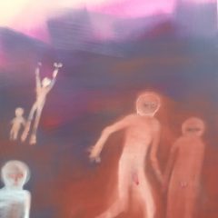 Hello! I’ve been traveling with Stella, visiting Steve in Karlsruhe, Germany, where he’s a visiting professor this summer. Among other side trips we took, Stella and I made it to Kassel for Documenta 13. And we spent a lovely long weekend in Paris, visiting Artblog buddies, Matthew Rose and Max Mulhern, and seeing a show at the Quay Branly Museum. More on all this coming up. This is a picture from Documenta, a panoramic tapestry (looks like a photo) with a panorama of people in front of it, by Britain-based artist Goshka Macuga.