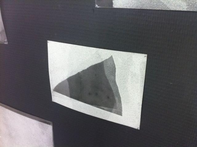 Some of this is captured on glass which is  then  exhibited  like specimens in a Natural History Museum. Some is caught on paper.  The resulting negative/positive drawings speak of weight and closeness: a moment, (and not a space because there was no room bettween the side of the fragment and the table or paper it lay on) a pressure of material against material. Still, until a window is left open in a storm or the cleaner comes to the house. .  .