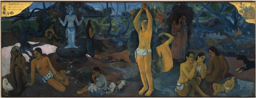 This return to majestic history painting certainly raises the question of what turn-of-the-20th century painting should be and do, and where it fits within the history of art. The paintings by Gauguin, Cézanne and Matisse stand out in scale and ambition, exceptions within their oeuvres. We know that Gauguin considered the d’ou Venons-nous? as his masterpiece, his bid for consideration as a major artist. The Cézanne is the largest of three large paintings of a subject he had returned to throughout his career; it was left, possibly unfinished, in his studio when he died. And Matisse troubled himself over Bathers by a River in three periods over eight years, with very substantial changes over time (all recovered through technical examination). Gauguin based his painting on a complex but entirely personal iconography, he didn’t expect it to be understood figure by figure; but with its span of humanity from near birth to near death, it is obviously his story of human life, and the only one of the modern Arcadian works that retains the clear presence of death. It is hard not to see the grandeur and ambition of these paintings as competition with the French old masters, bids for consideration as important painters whose work should join their predecessors in the Louvre. They certainly understood that tabletops of apples, genre scenes or studies of light on a church facade would not hold up to Delacroix’s Liberty Leading the People.