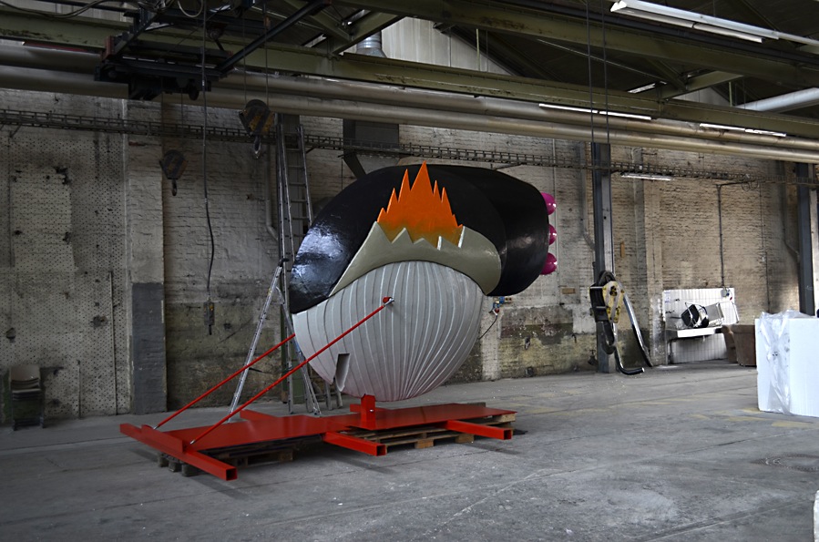 As for the choice of colors, the work itself asked for specific tones, which I mostly defined in the maquette phase. Though derived from free forms, the sculptures turned out very determined, and the choice of colors acknowledges that. They look like they know what they are doing. Nevertheless, it’s fascinating and at times even disturbing to observe how the full-scale sculpture’s character is built during the painting process: The primed Styrofoam pieces are white, a bit like marble, and the piece appears to lose its innocence through the application of color.