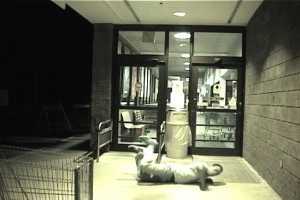 A young man in the nondescript uniform of his generation (trainers, tee shirt,…) dances in front of the automatic doors to a grocery store. His solo (captured on video) veers between street dancing and modern dance, then turns into the stumbling of a drunk. The slow motion, repeats and jump cuts of the video manipulation creates its own, sophisticated choreography. Edward and Me (2000) is the first of six videos in the Rosenwald Wolf Gallery‘s exhibition, David McKenzie; Everything’s alright, nothing’s okay! (through September 28). The video is smart and appealing – yet raises the question of what assumptions we’d make if we actually saw the young man, in any of these performance modes, in front of our neighborhood store.