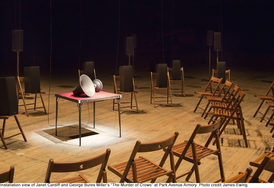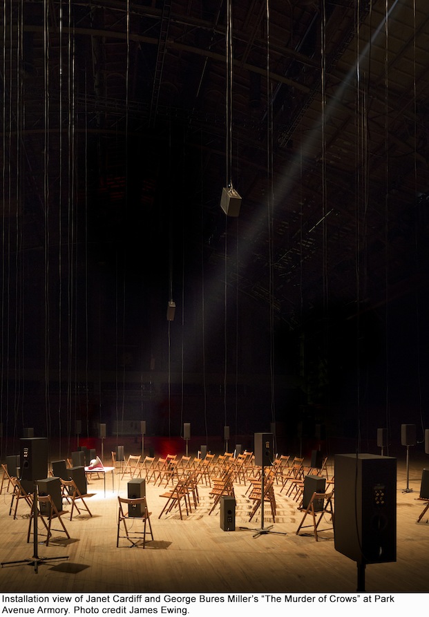 Janet Cardiff and George Buress Miller’s A Murder of Crows at New York’s Park Avenue Armory has been compared to ghost stories told around the camp fire. That analogy holds up pretty well for the recently closed audio immersion. It delivered a good punch if not a punchline.