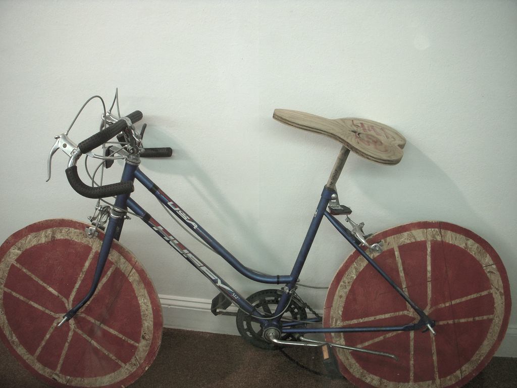As the show’s guest curator Sid Sachs points out in his statement, contemporary sculpture is “raucous, scattered, sometimes formal and process oriented.” In addition, the works are all highly crafted, although not necessarily “finely” crafted. Pieces like Ashley Rodriguez Reed’s “Enchanted Hollow” and Corrina Mehiel’s bike works feel as if they were willed into being, their lumpiness and insistently non-design-y affect worn like badges. Crafting was clearly part of their art endeavor but not the end all.